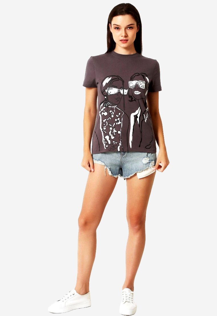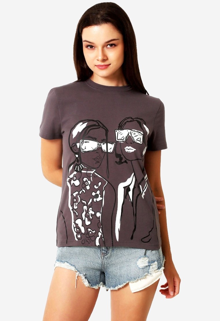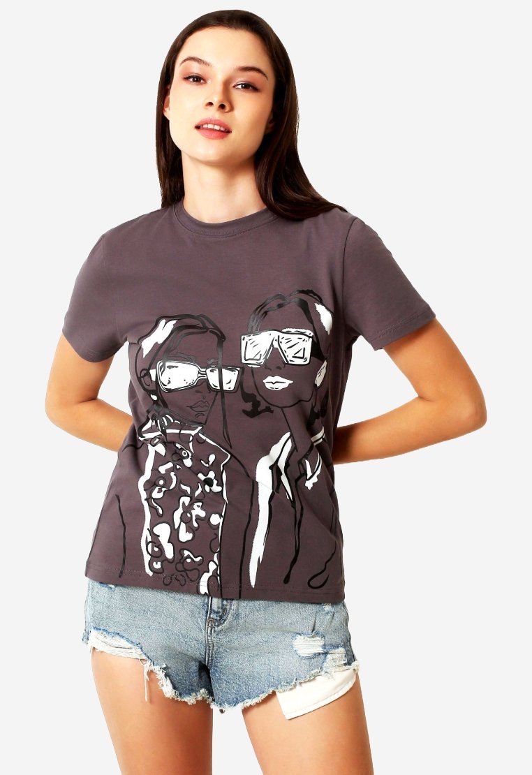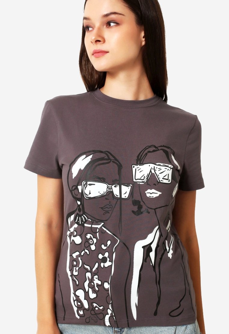 TONIQUE Women’s Graphic T-Shirt / TONIQUE Kaos Katun Organik Wanita Abu Abu Gelap BESTIE T-Shirt