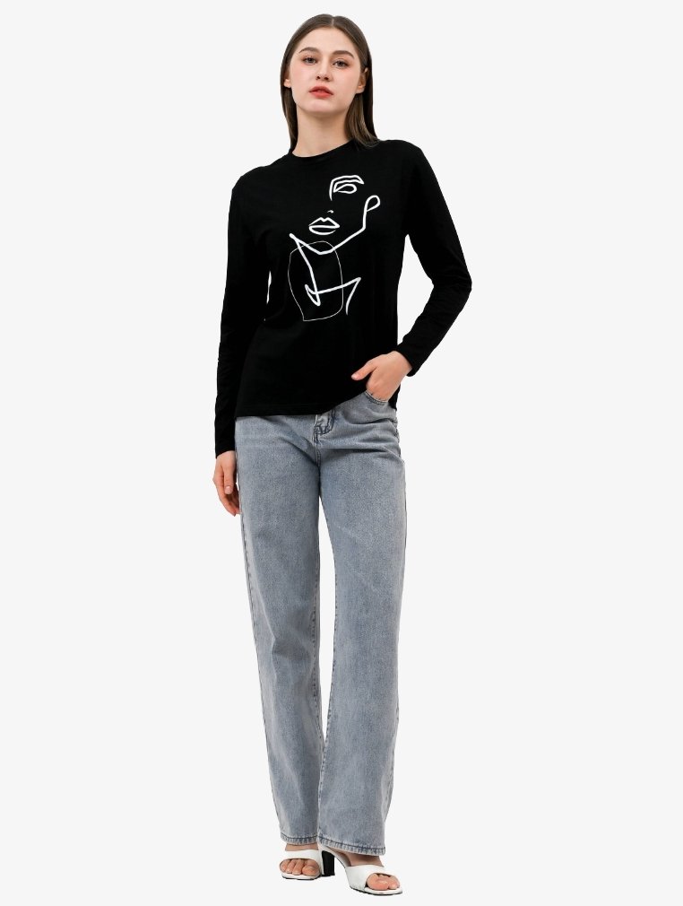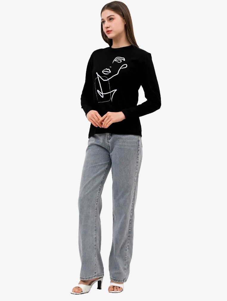 TONIQUE Wanita Reguler Fit Kaos Lengan Panjang Katun Combed 24s Hitam BRITNE Women’s Regular Fit Long Sleeve Cotton Combed 24s T-Shirt Black