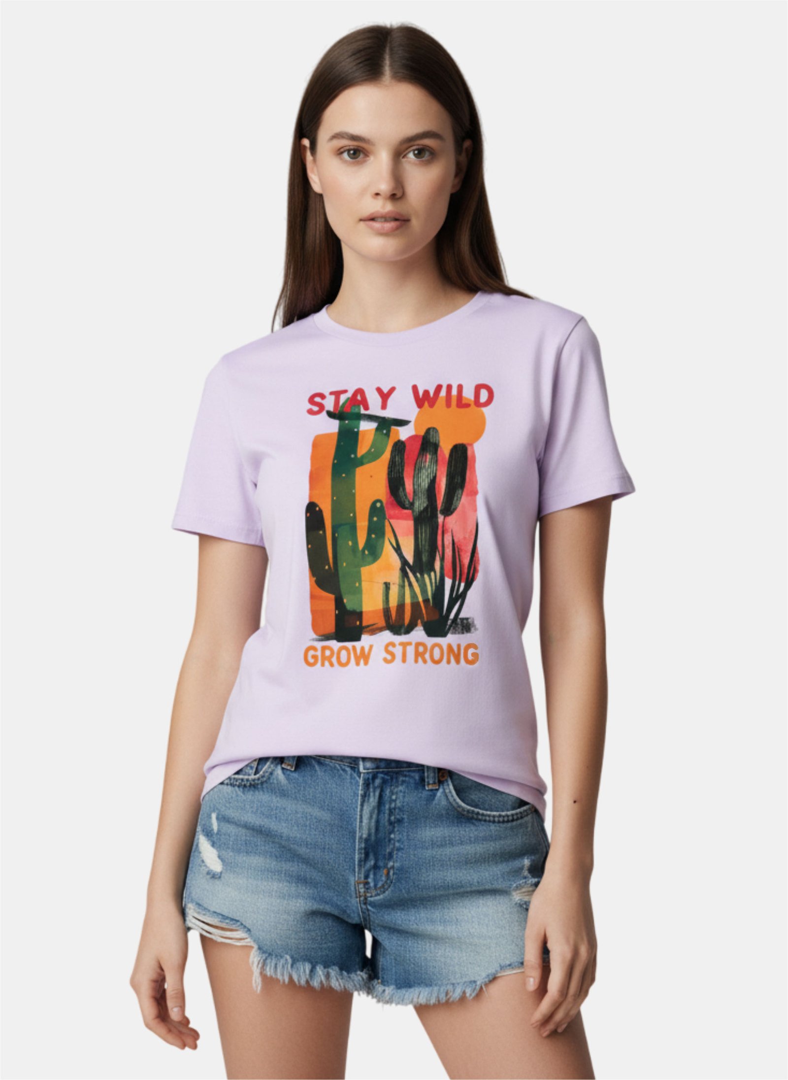 TONIQUE Kaos Wanita Katun Combed 24s Grafis Reguler Fit CACTINE Lavender Graphic Tshirt