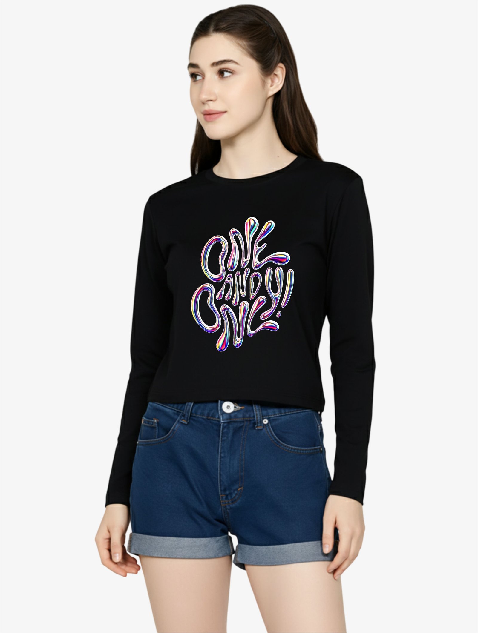 TONIQUE Kaos Cropped Wanita Katun Combed 24s Grafis Reguler Fit Lengan Panjang Hitam C11 Women’s Cotton Combed 24s Regular Fit Long Sleeve Tshirt Black Hitam Tee