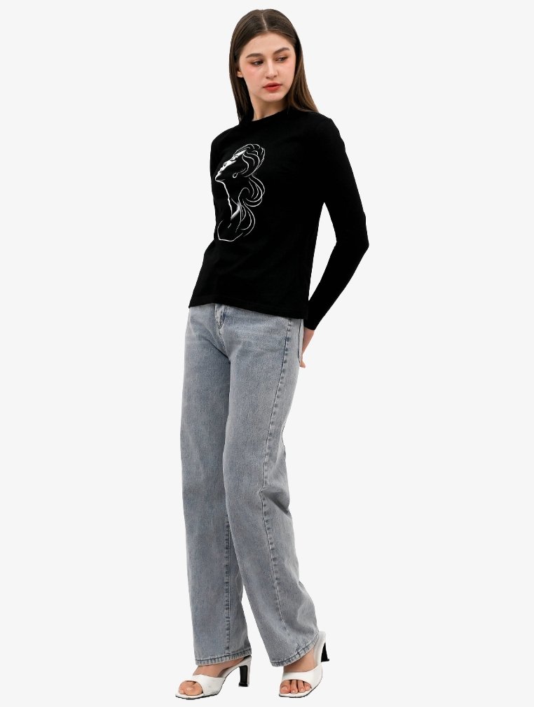 TONIQUE Wanita Reguler Fit Kaos Lengan Panjang Katun Combed 24s Hitam DEANDRA Women’s Regular Fit Long Sleeve Cotton Combed 24s T-Shirt Black