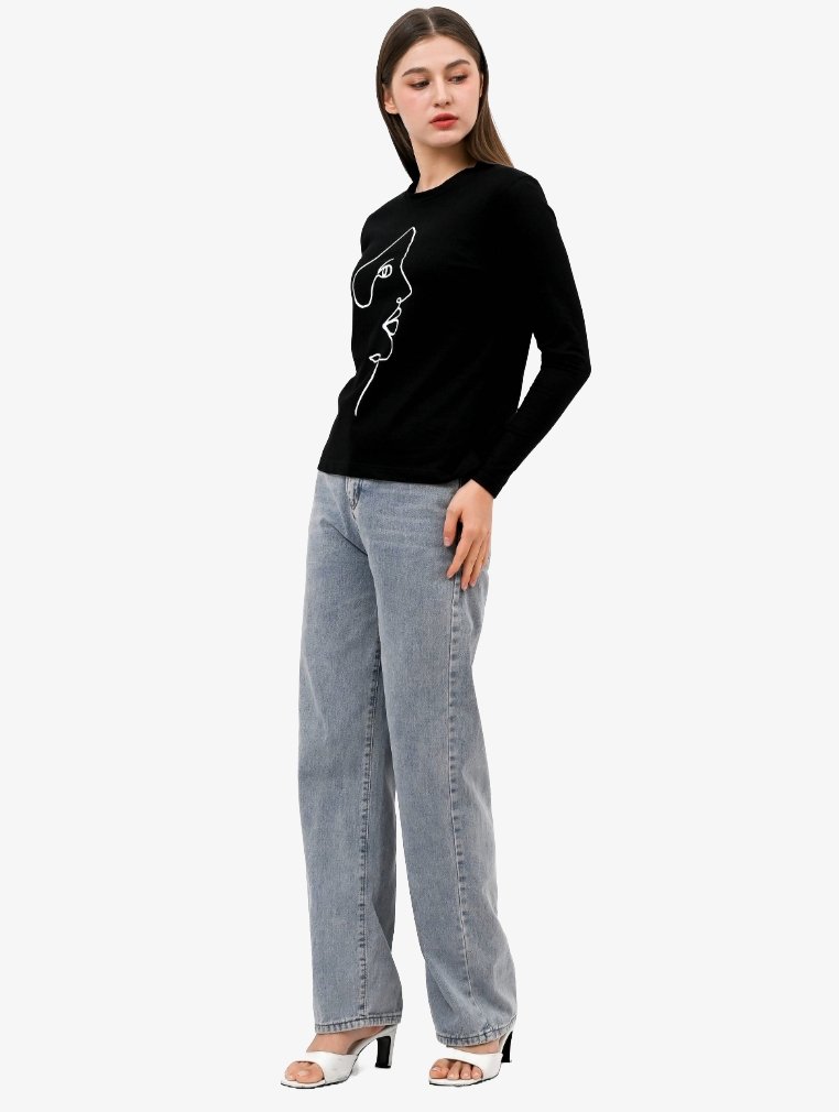 TONIQUE Wanita Reguler Fit Kaos Lengan Panjang Katun Combed 24s Hitam GABRIELLA Women’s Regular Fit Long Sleeve Cotton Combed 24s T-Shirt Black