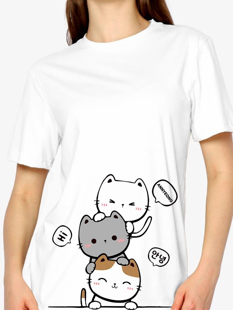 What speaks louder and cuter than the 3 kitties saying Anyeong (“Hi” in Korean)? Nothing! Cuteness combined with comfort of super soft cotton.