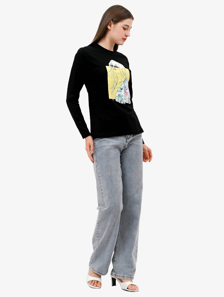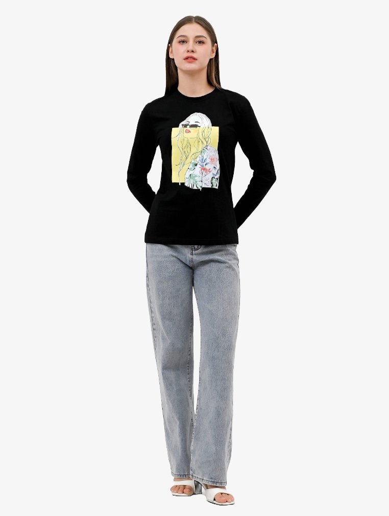 TONIQUE Wanita Reguler Fit Kaos Lengan Panjang Katun Combed 24s Hitam HILDA Women’s Regular Fit Long Sleeve Cotton Combed 24s T-Shirt Black