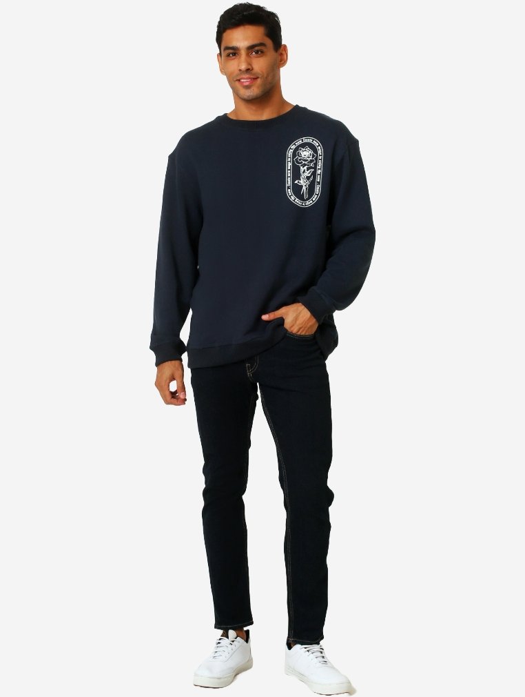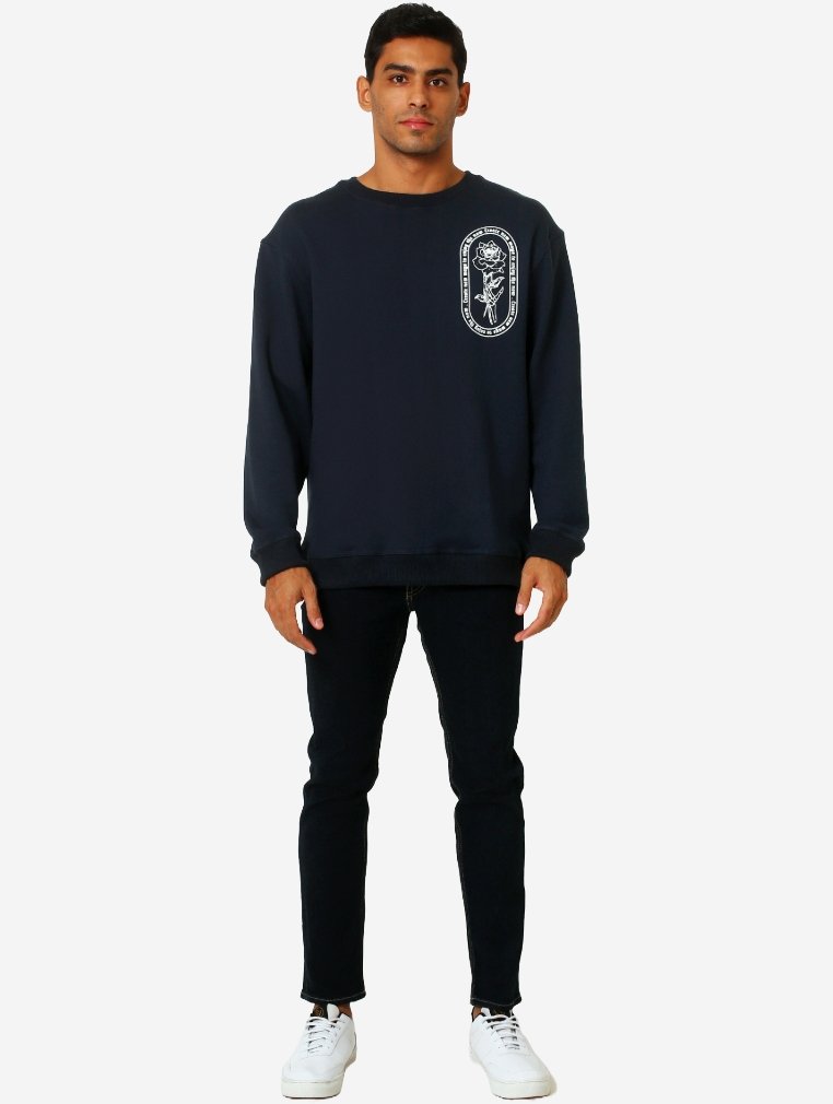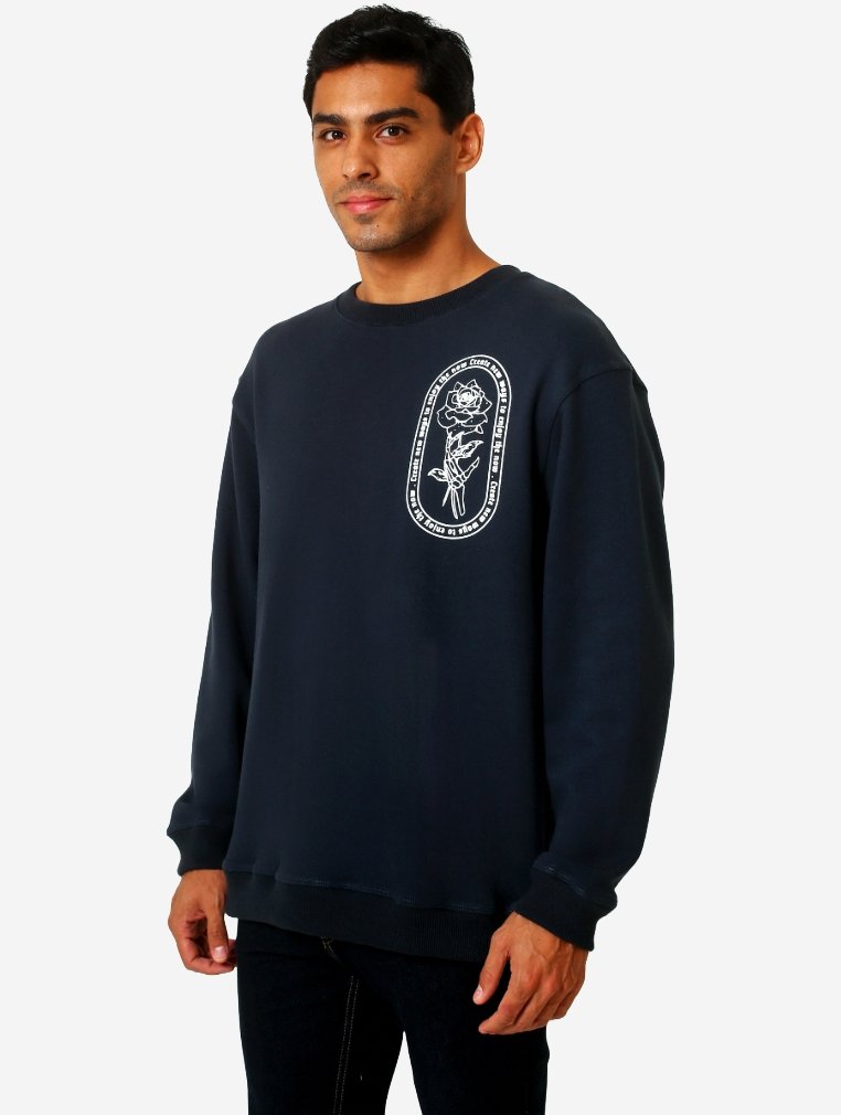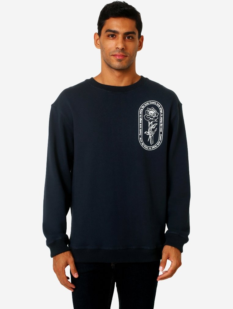 JOHN Mens Cotton Sweatshirt Navy Biru Sweatshirt Pria Biru