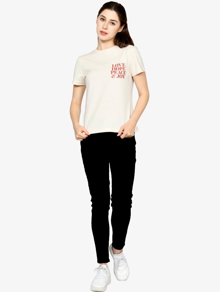 TONIQUE Kaos Wanita Katun Combed Grafis Reguler Fit Krem LOVE Women’s Regular Fit Graphic T-shirt Cream