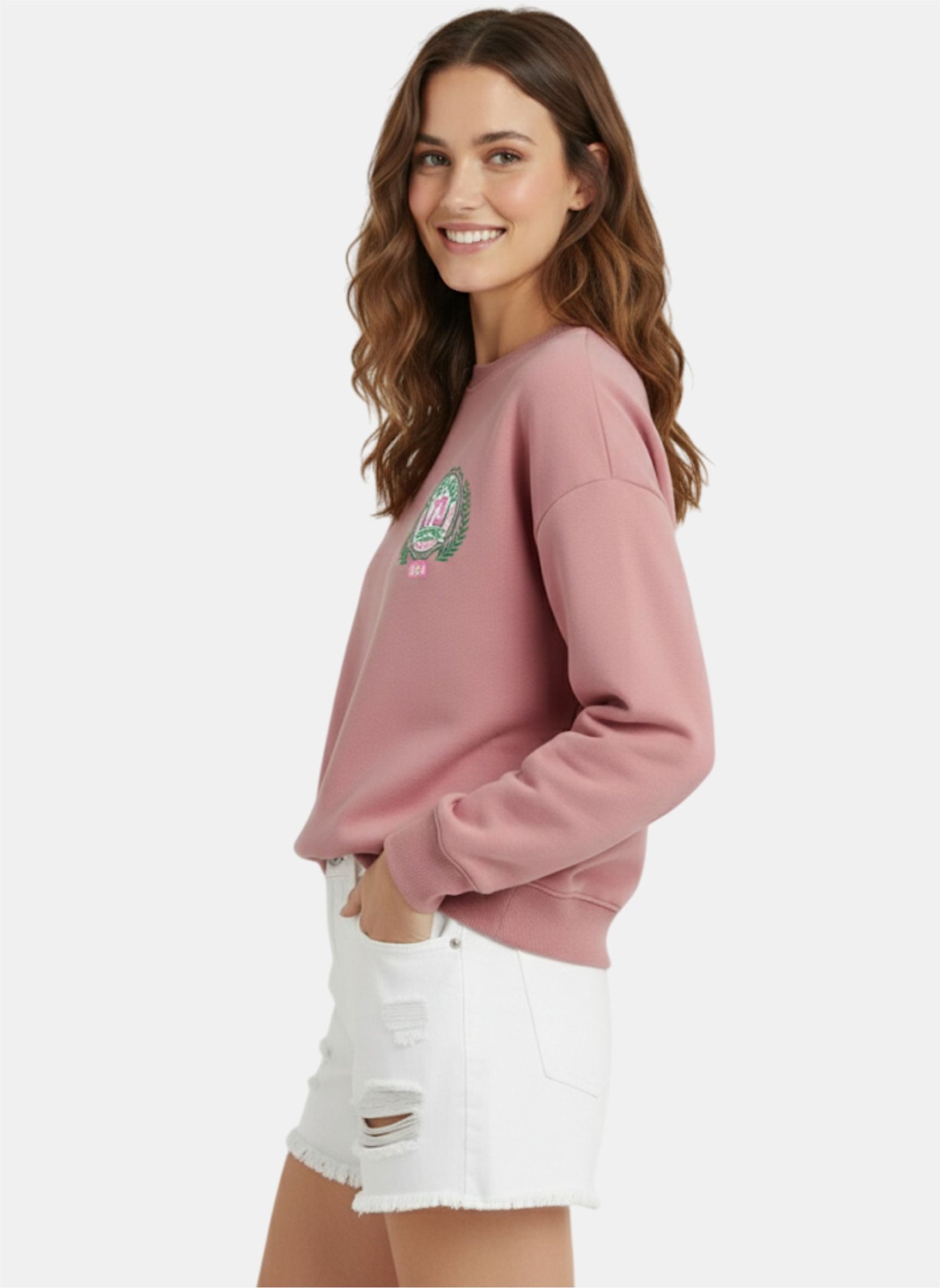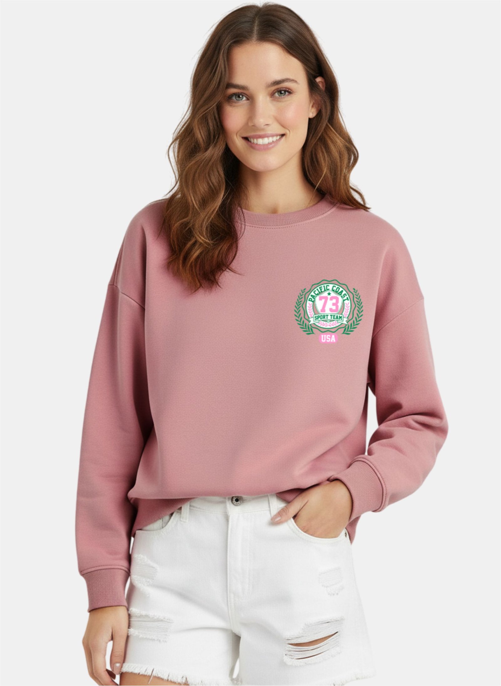 MALIBU Sweatshirt Katun Wanita Grafis Regular Fit Women’s Cotton Sweatshirt Dusty Pink.