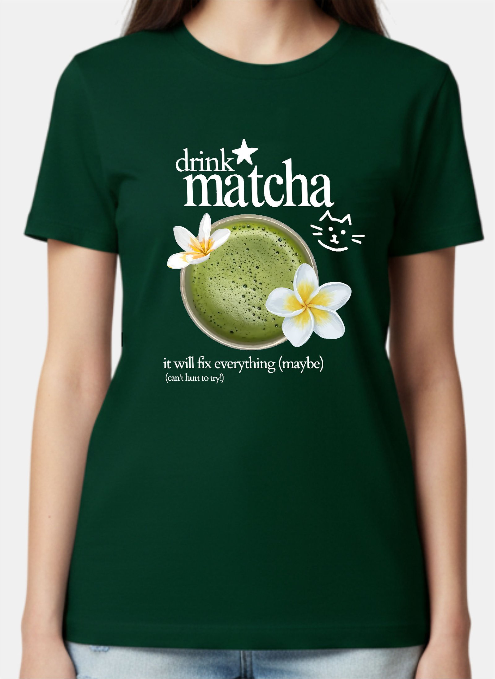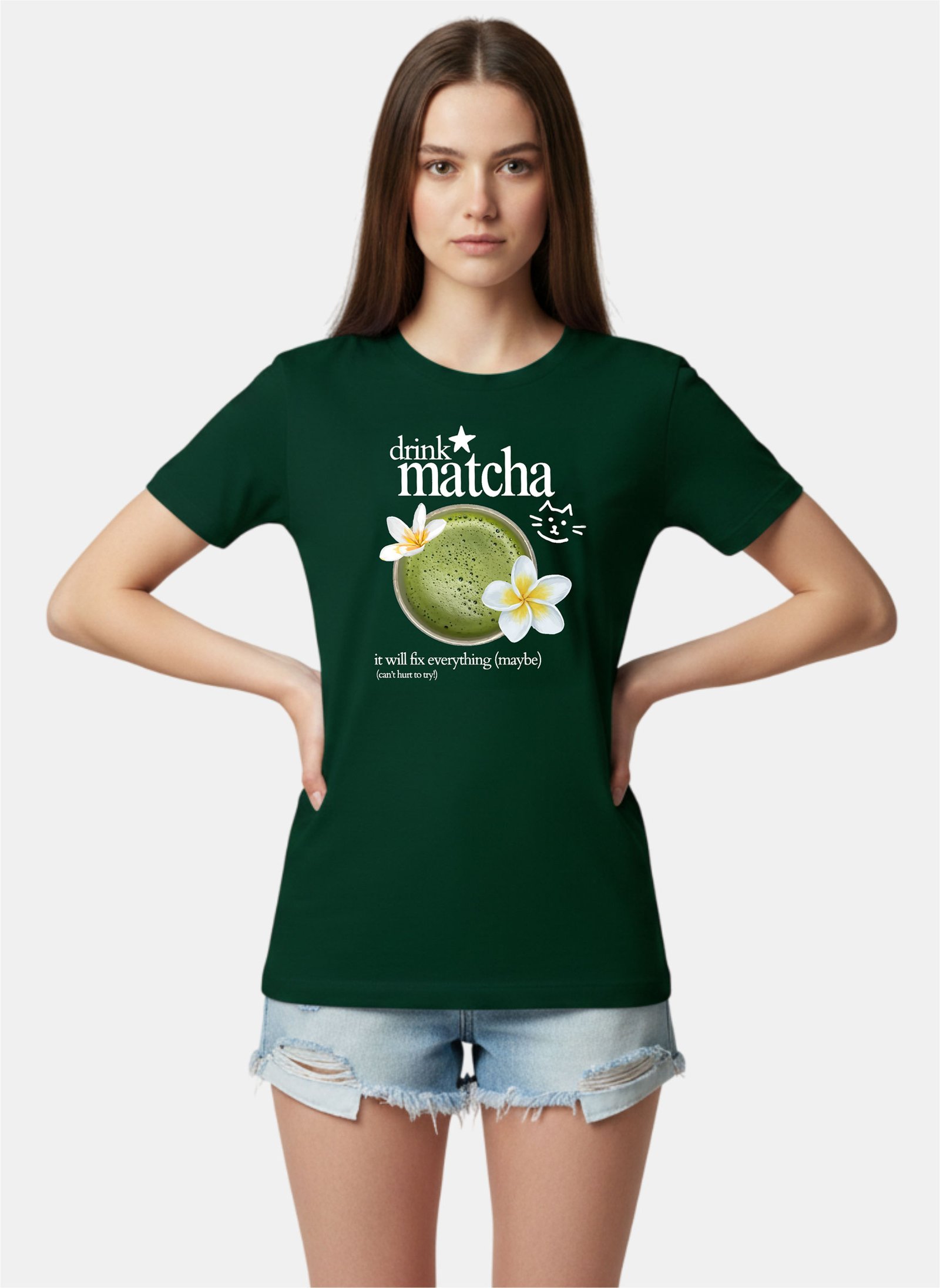 TONIQUE Kaos Wanita Katun Combed 24s Grafis Reguler Fit MATCHA Hijau Botol Graphic Tshirt