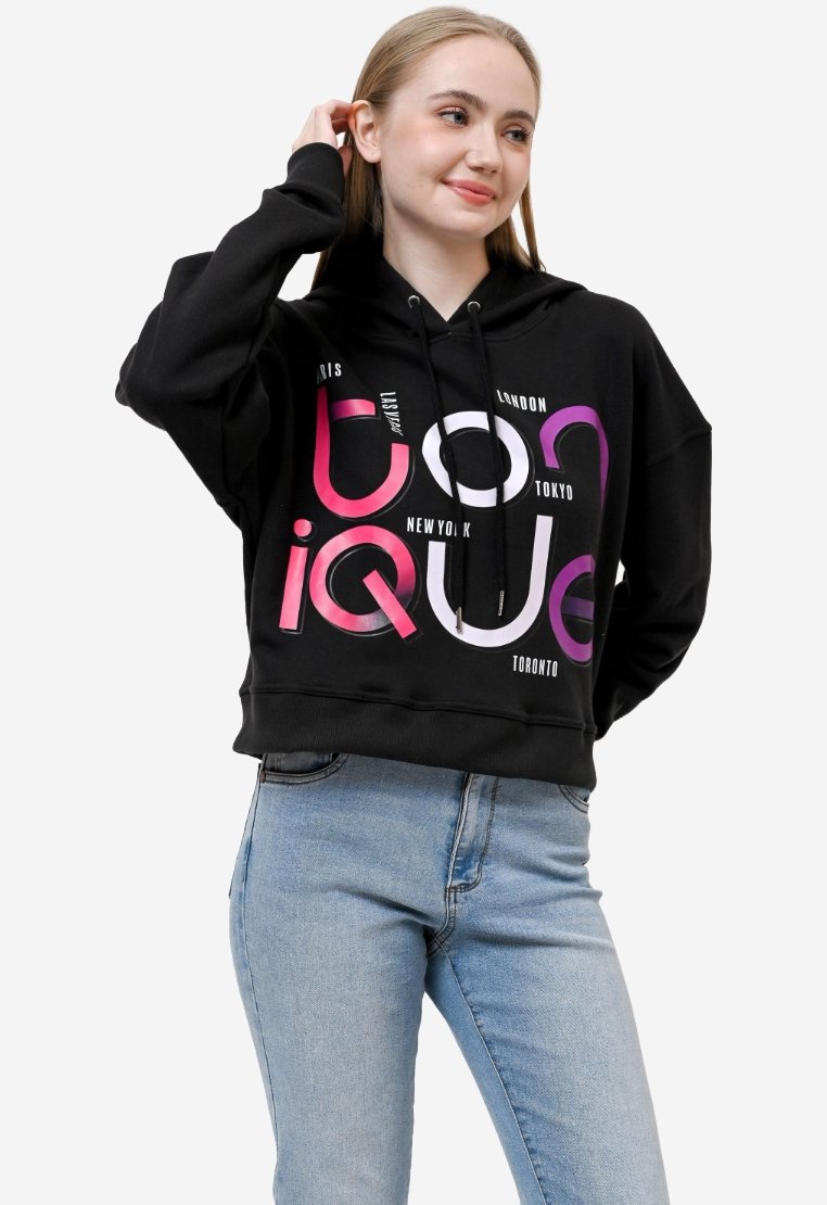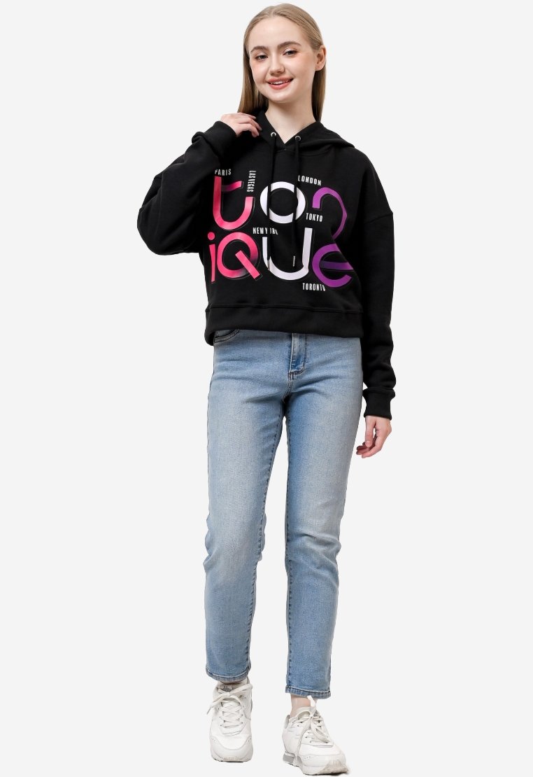 TONIQUE Wanita Crop Hoodie Katun Fleece Hitam MIA Women’s Regular Fit Cotton Fleece Crop Hoodie Black
