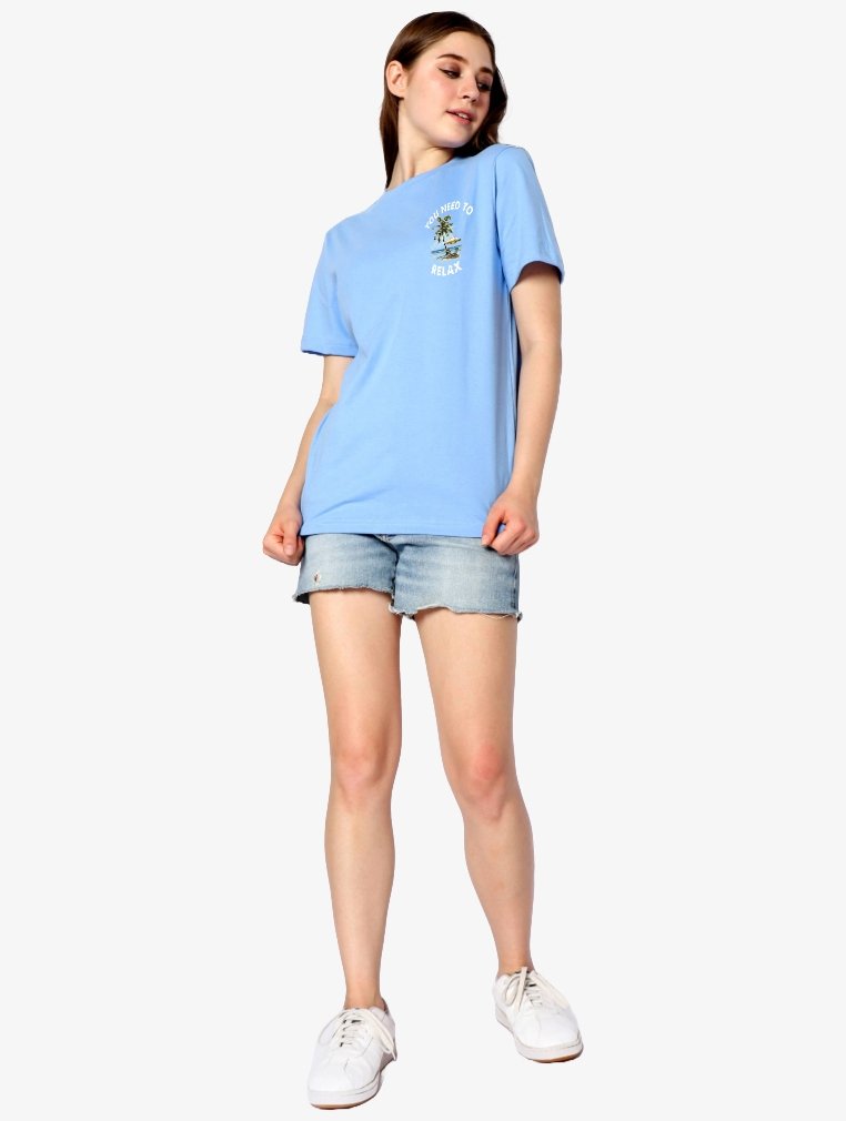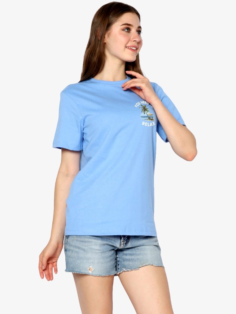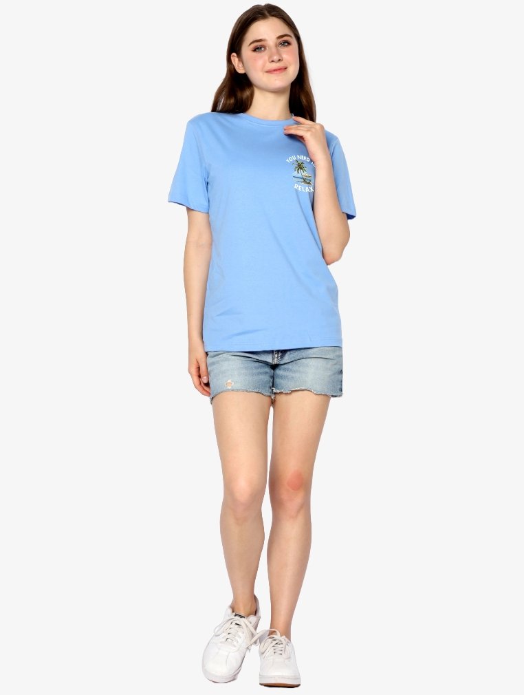 TONIQUE Kaos Wanita Katun Combed 24s Grafis Reguler Fit NILA Women’s Regular Fit Graphic T-shirt Blue Biru Muda