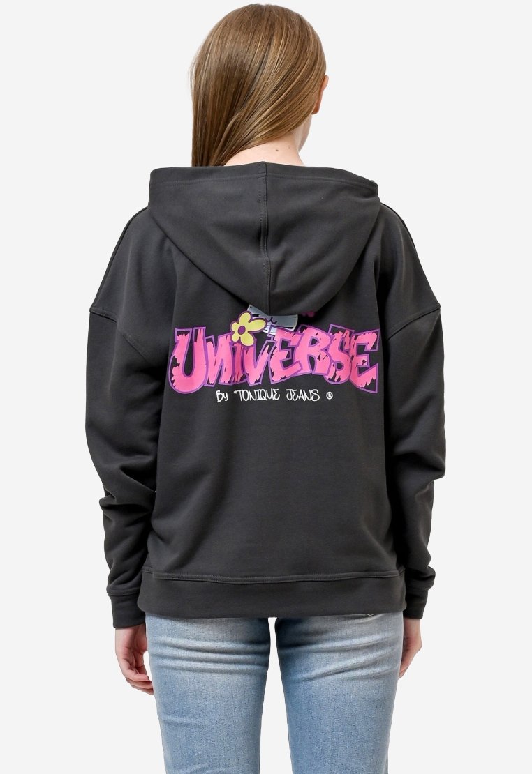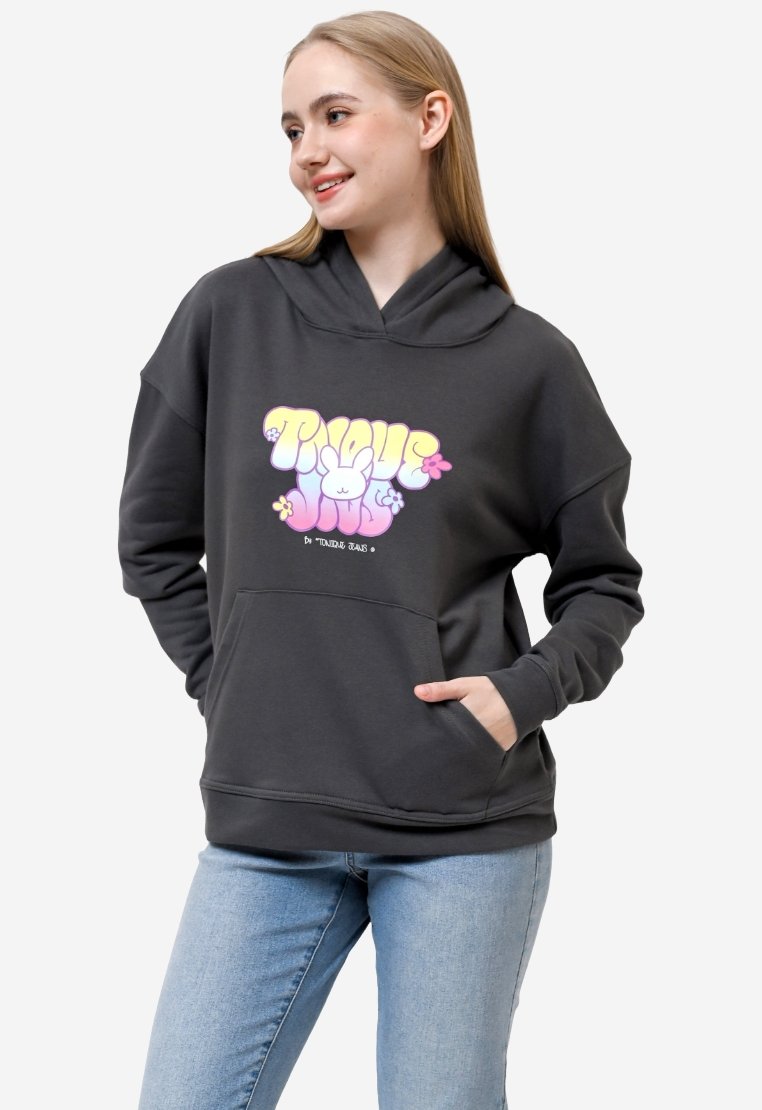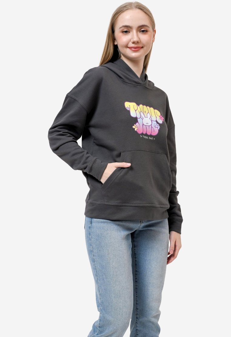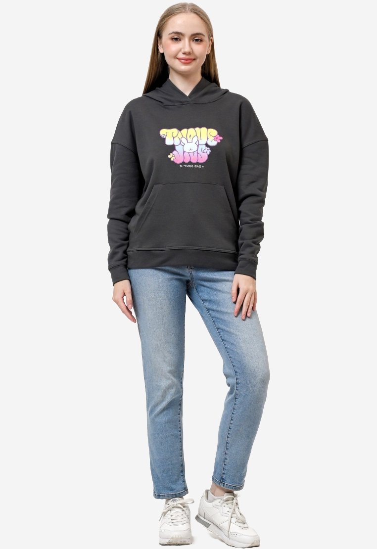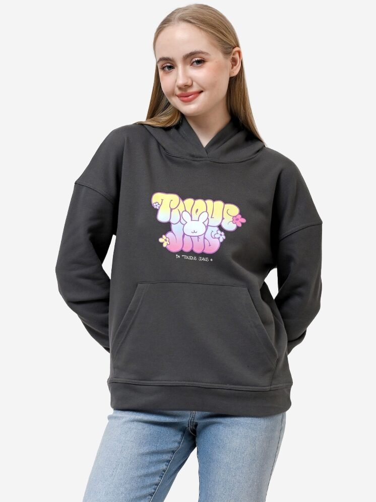 TONIQUE Womens Cotton Graphic Hoodie Dark Grey NOLA Hoodie Wanita Katun Abu Abu