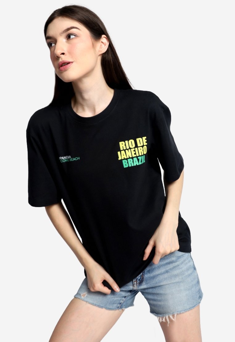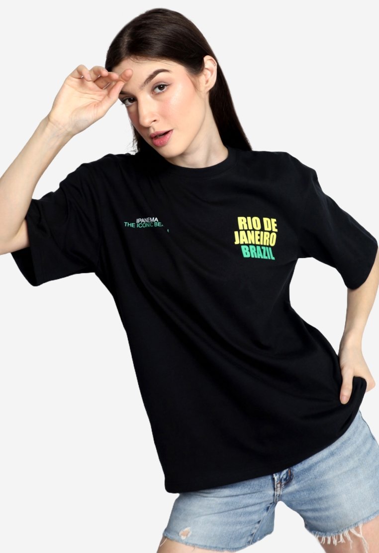 RICCI Womens Oversize Cotton Tshirt Black Kaos Oversize Wanita Hitam