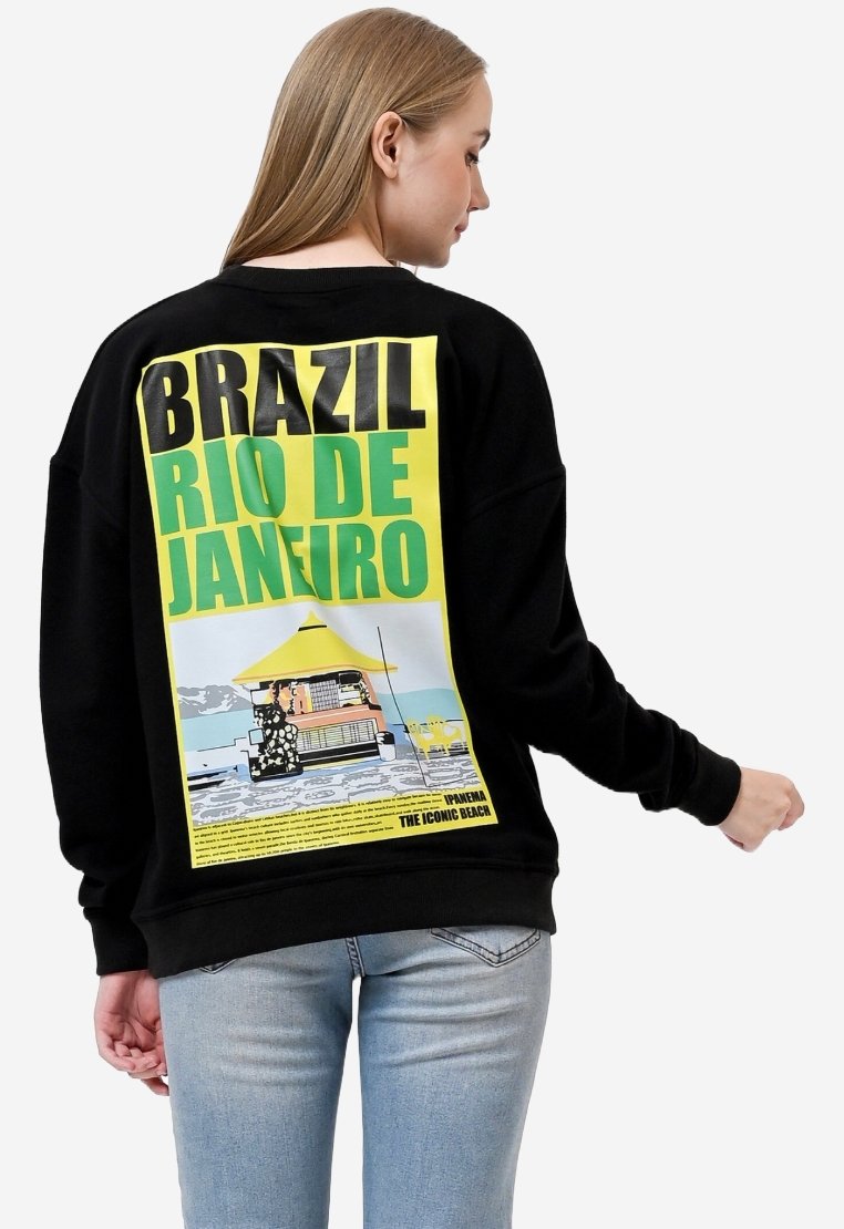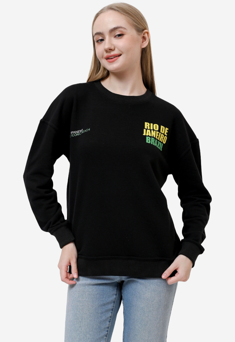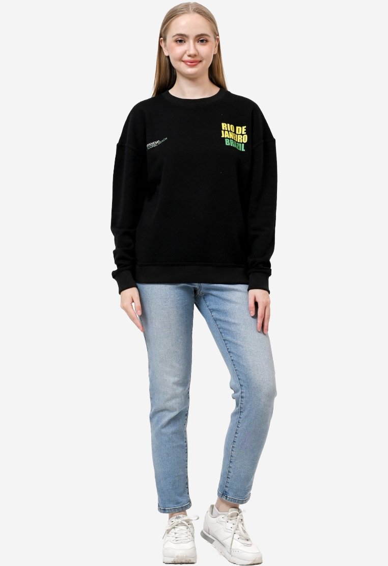 TONIQUE Womens Cotton Graphic Sweatshirt Katun Wanita Hitam