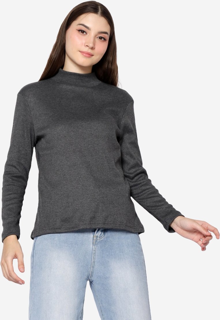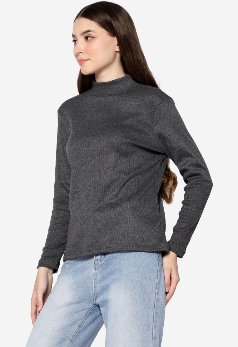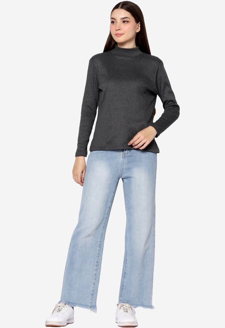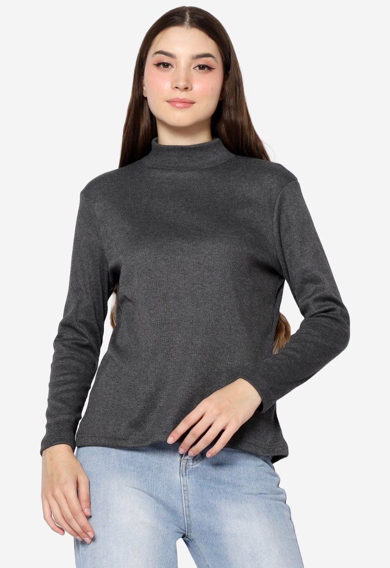 TONIQUE Kaos Wanita Turtle Neck Katun Combed Abu Abu SALLY Cotton Combed Regular Fit Turtle Neck Top Grey