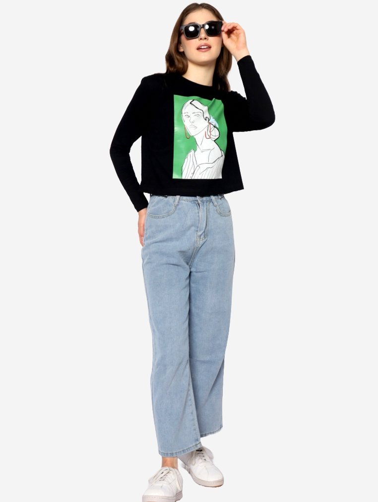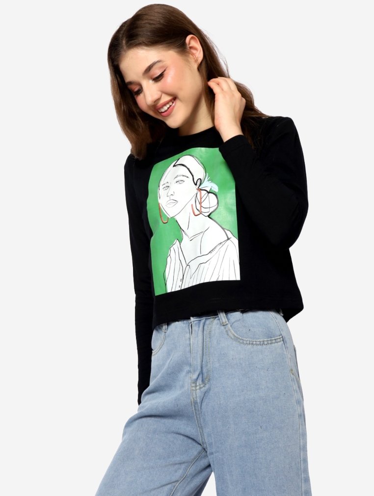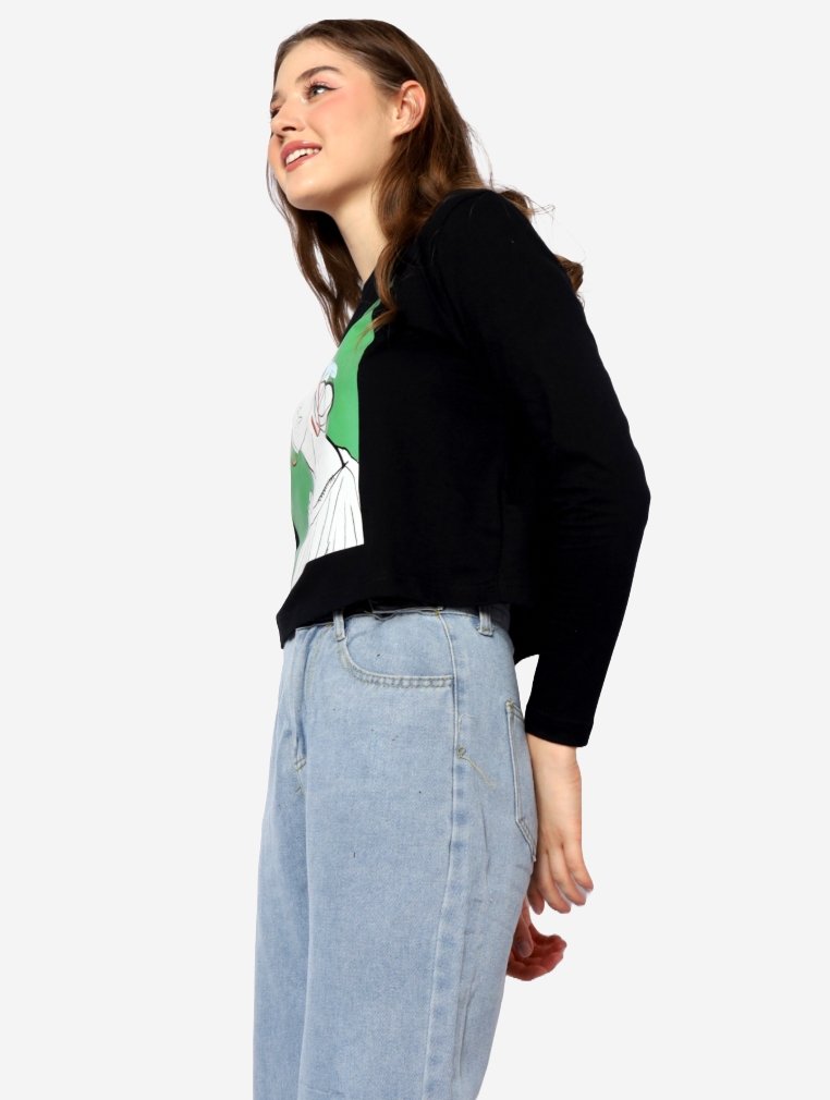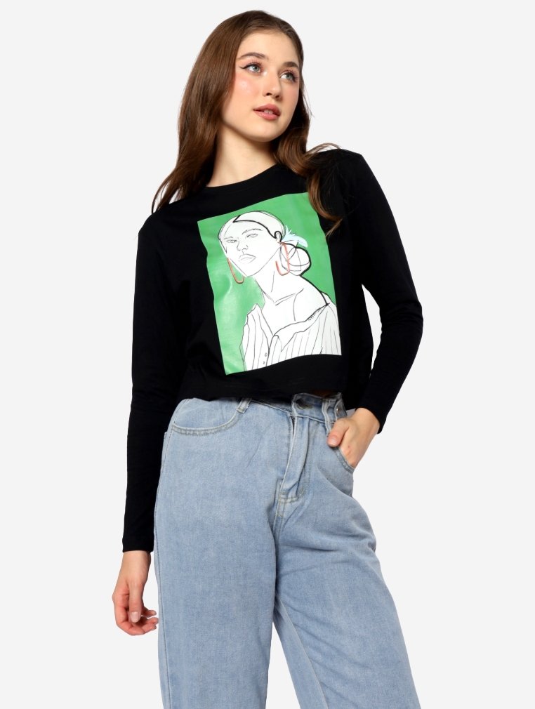 TONIQUE Wanita Kaos Crop Lengan Panjang Katun Combed 24s Hitam SANDRA Women’s Regular Fit Long Sleeve Crop Top Cotton Combed 24s Black