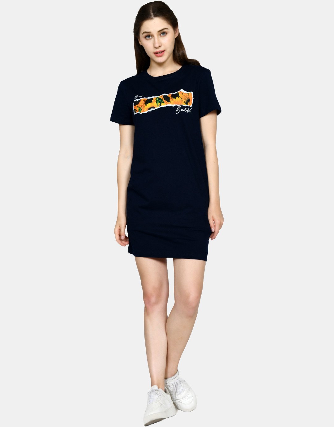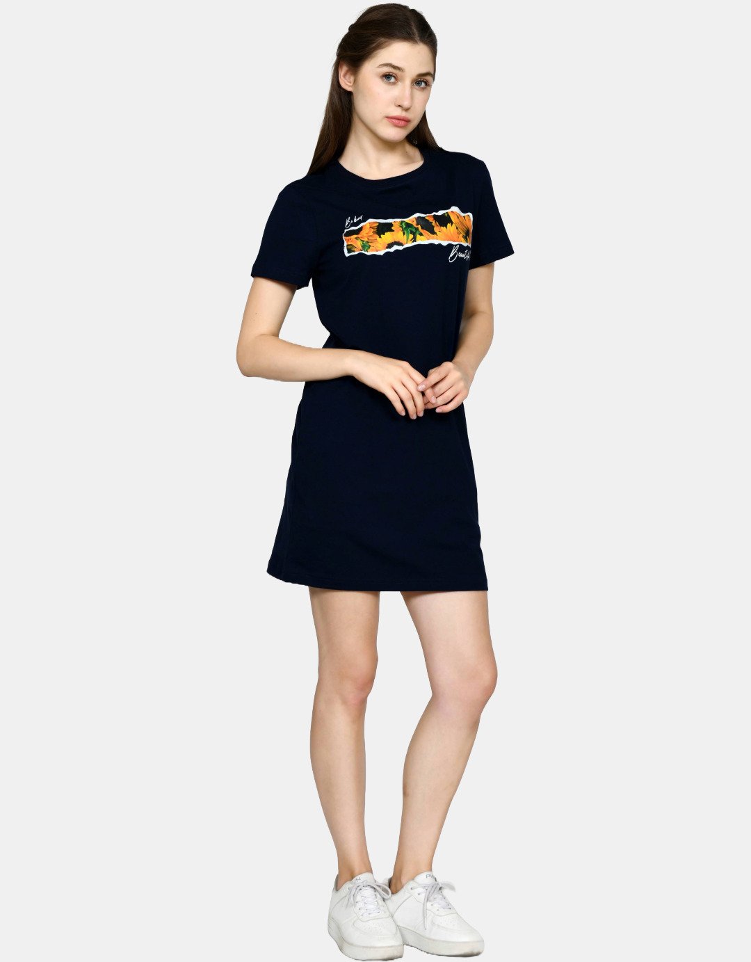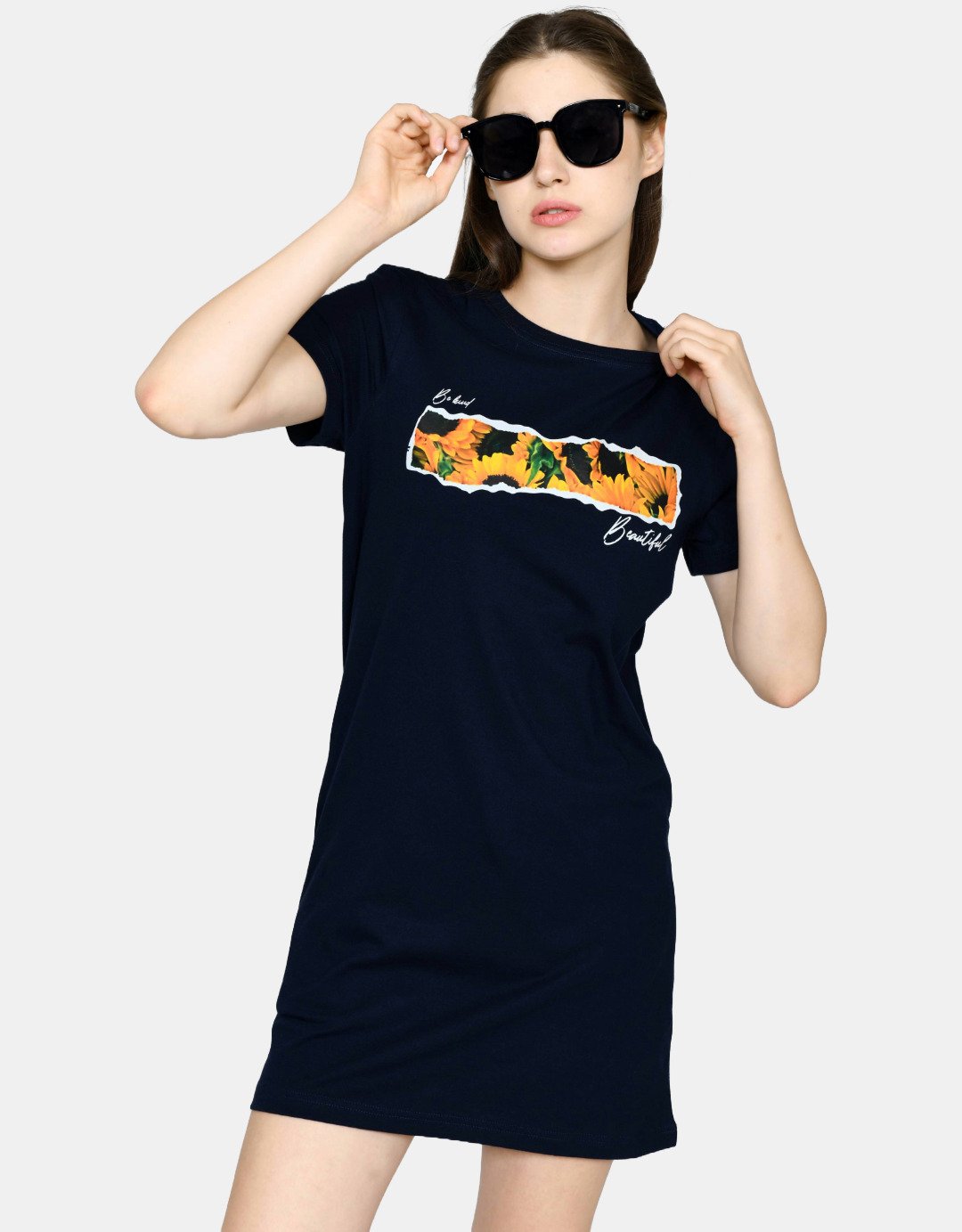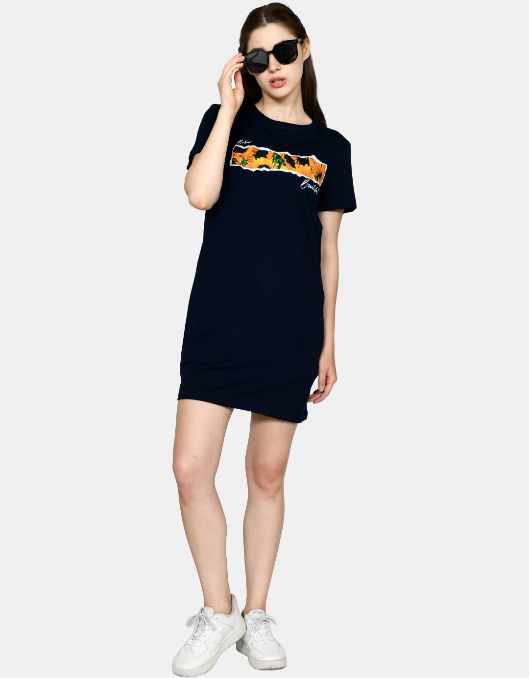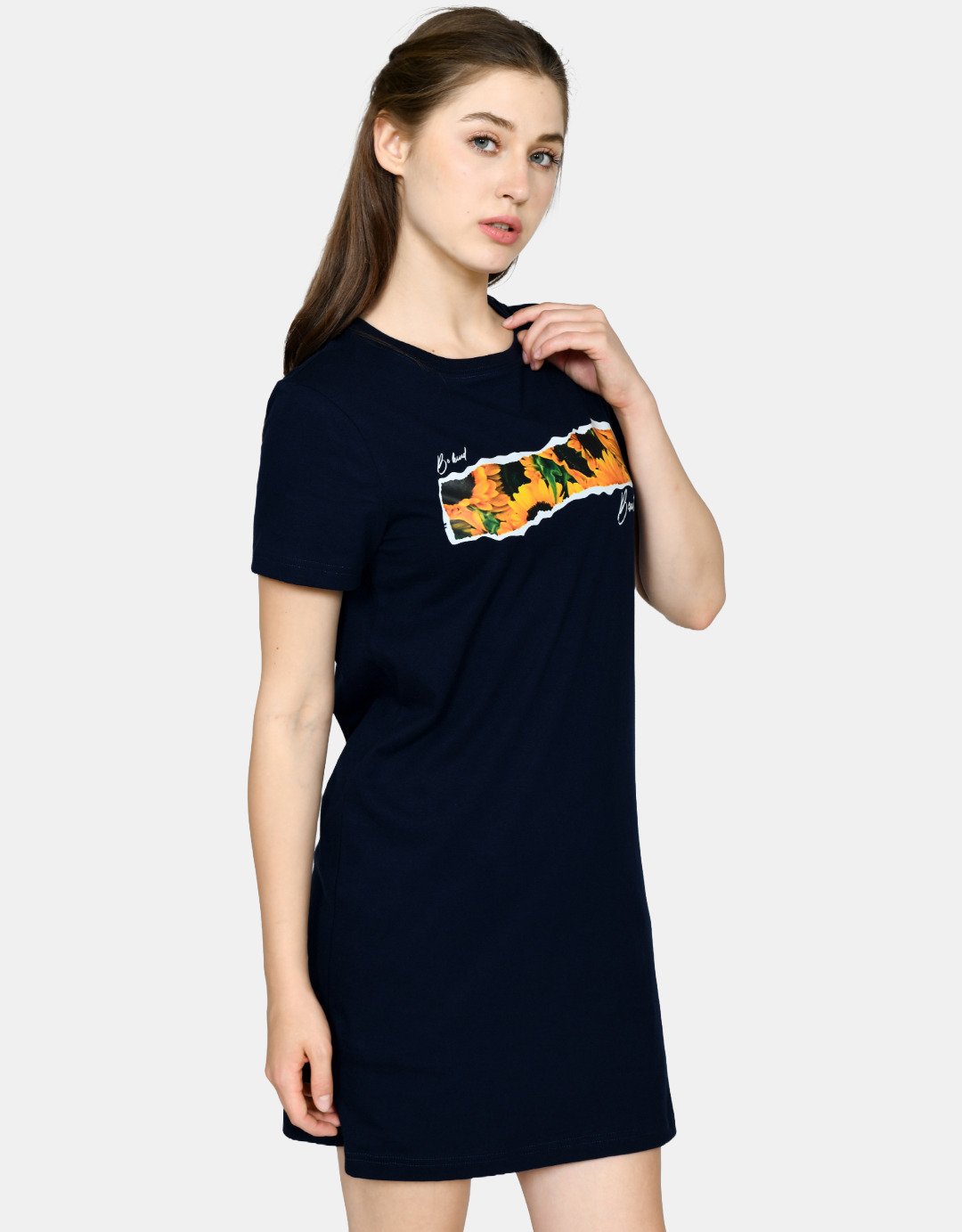TONIQUE Kaos Dress Wanita Katun Combed Grafis Regular Fit SUNFLOWER Cotton Combed 24s Regular Fit Graphic Tshirt Dress Navy Biru Tee Dress