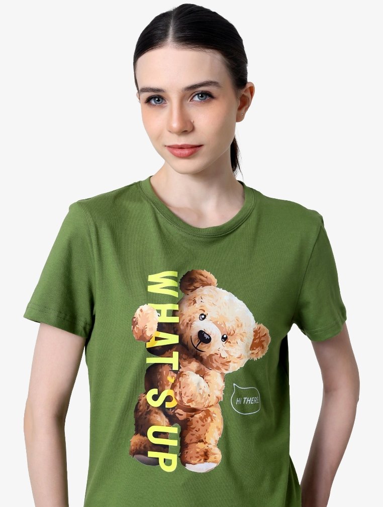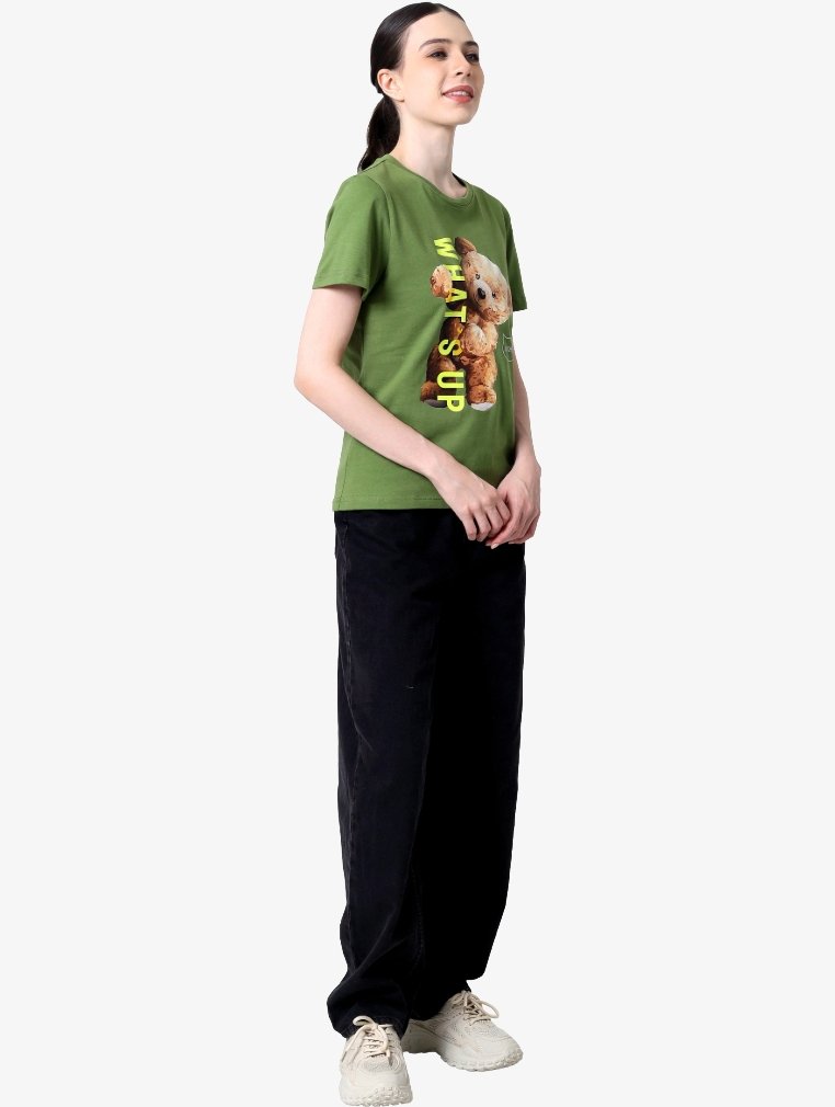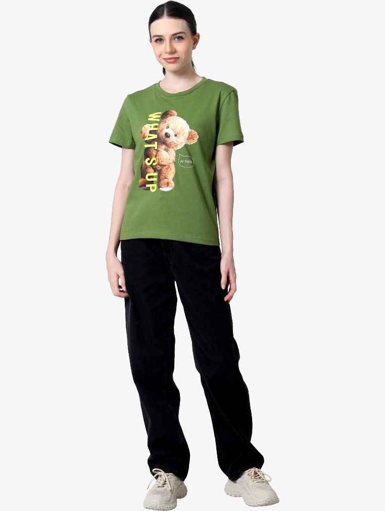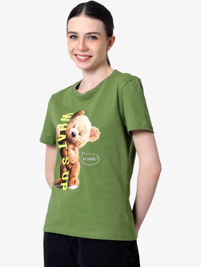 TONIQUE Kaos Wanita Katun Combed Grafis Reguler Fit TESSA Graphic Tshirt Hijau Olive