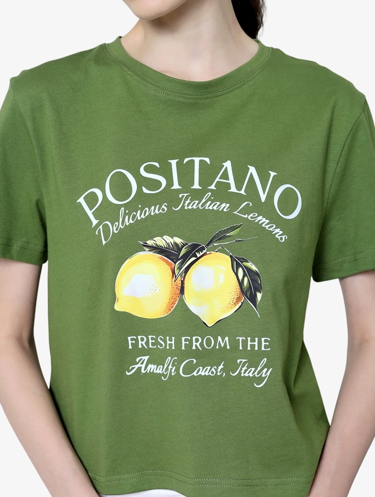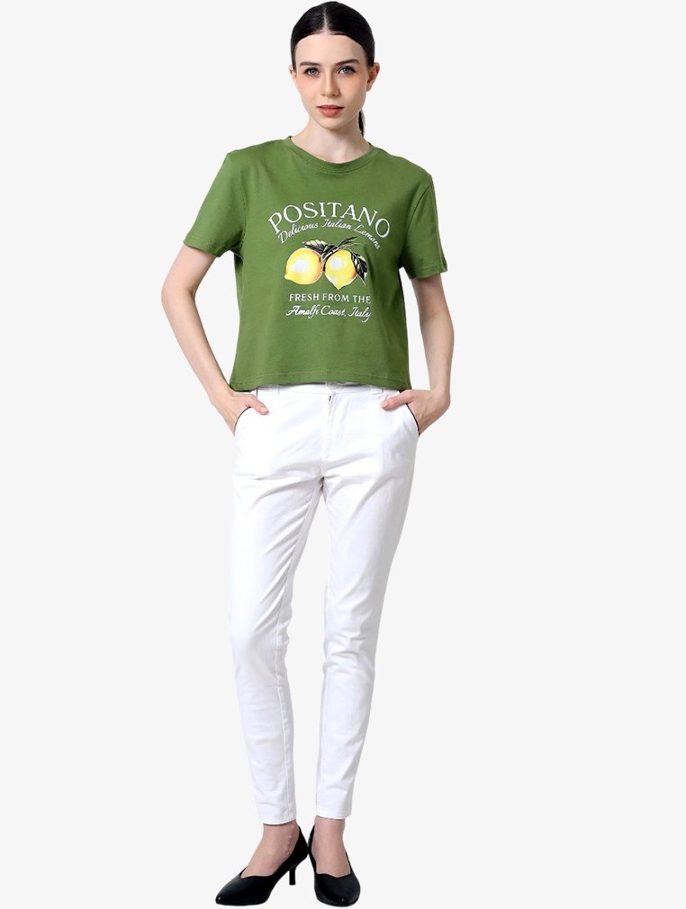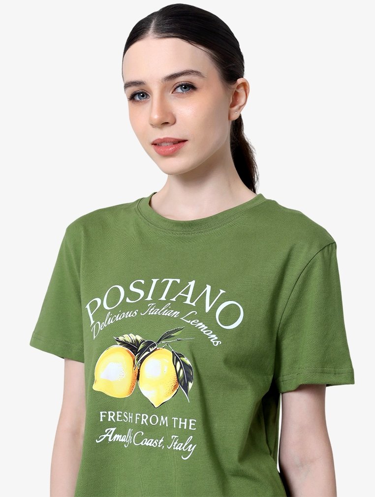 TONIQUE Kaos Crop Wanita Katun Combed 24s Grafis Reguler Fit XIMENA Women’s Cotton Combed 24s Crop Tshirt Olive Green